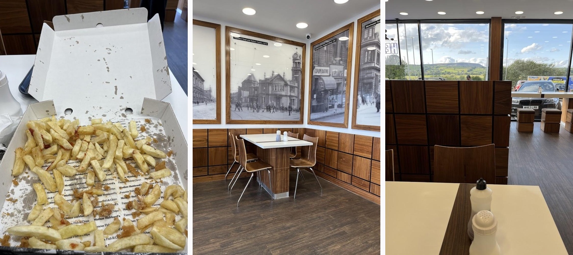 Update: 17 July, today bought 2 portions of fish bites and chips. Brought home, open boxes and disappointed. Looks like I got kids fish bites and someone take piece from my fish bite. Taste like it was fried to much. Some chips raw. :( We had family meal. Fish is better than in Blackpool. This is my favourite place. Chips was alright, but could be little bit tiny or deeper frying. Atmosphere perfect. Big windows. You can enjoy view to the pendle hill. Love this place.
