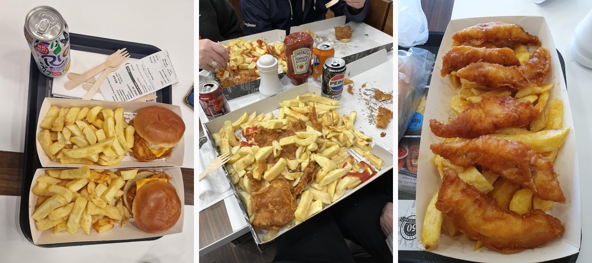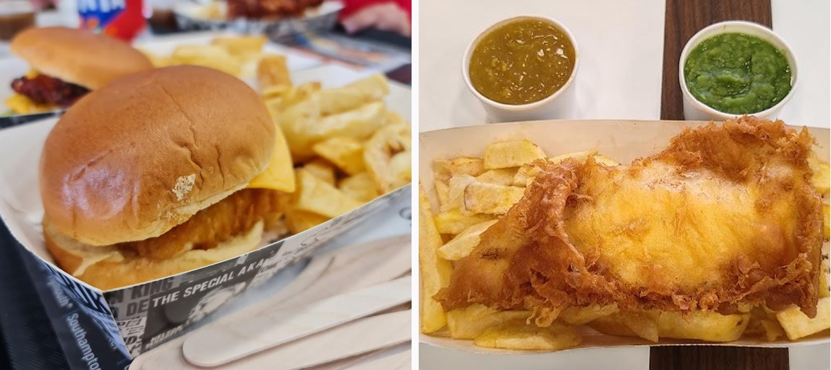 I ordered the jumbo fish an chips with 2 sides and the fish bites with chips. Chips were as fresh as they come and the jumbo fish was simply delicious. The batter was delicious an the fish tasted amazing with the sides mushy peas an curry. Price wise as you expect quite expensive cost me nearly £30 but well worth it. Since then have been quite a few times and it's still delicious an fresh, also have tried the munch box which is excellent value for money at £11.95 get 2 chicken strips, 2 hot wings 2 fiery fish pieces, chips, drink, side of your choice and a butty of your choice. This could definitely fill 2 people up as the box is big as shown in picture.